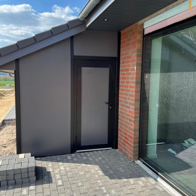 Stiebel Eltron Wärmepumpe, KNX Smart Home in allen Räumen, Schüco Aluminium Fenster und Türen (AWS/ADS 90 SI+, ASE 80 HI), Beck und Heun Raffstores vor allen Fenstern und Schiebeanlagen, Fußbodenheizung in allen Räumen